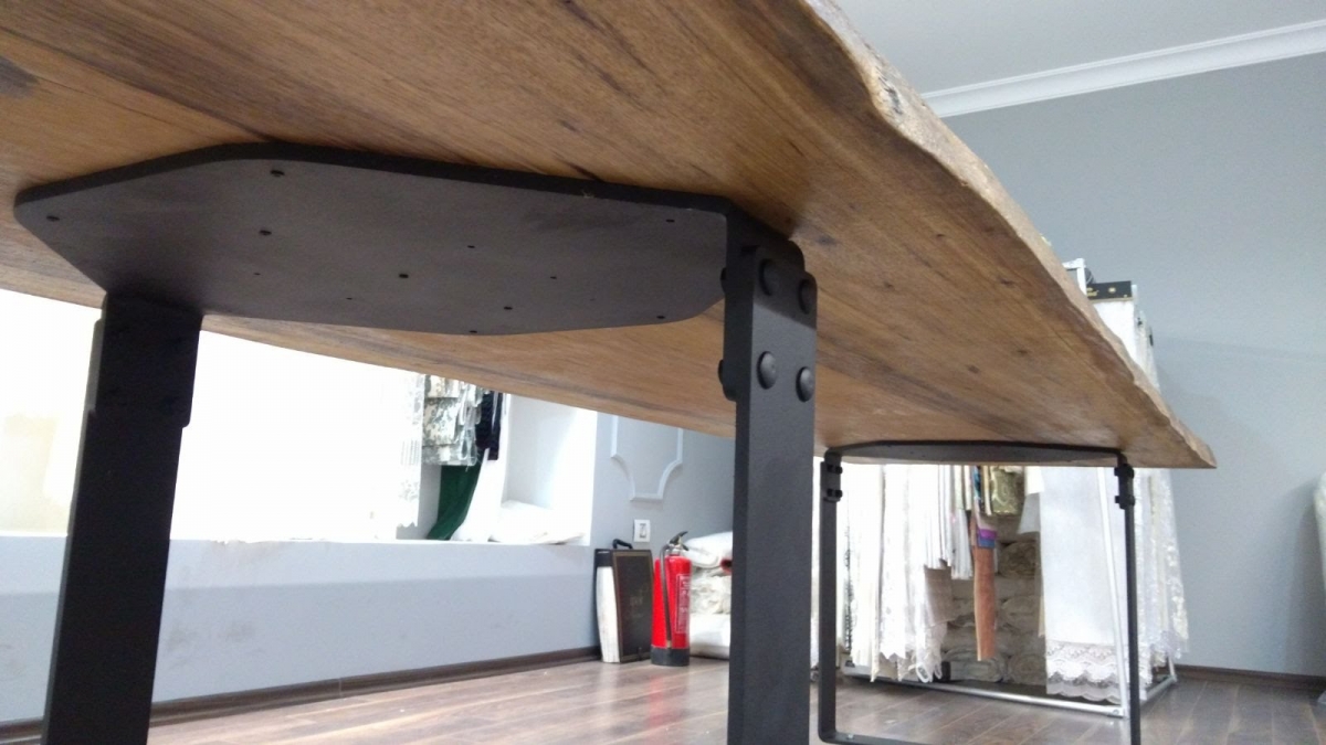 Meşe Ağacından Ahşap Masa Metal Ayaklı (3metre x 90 cm)
