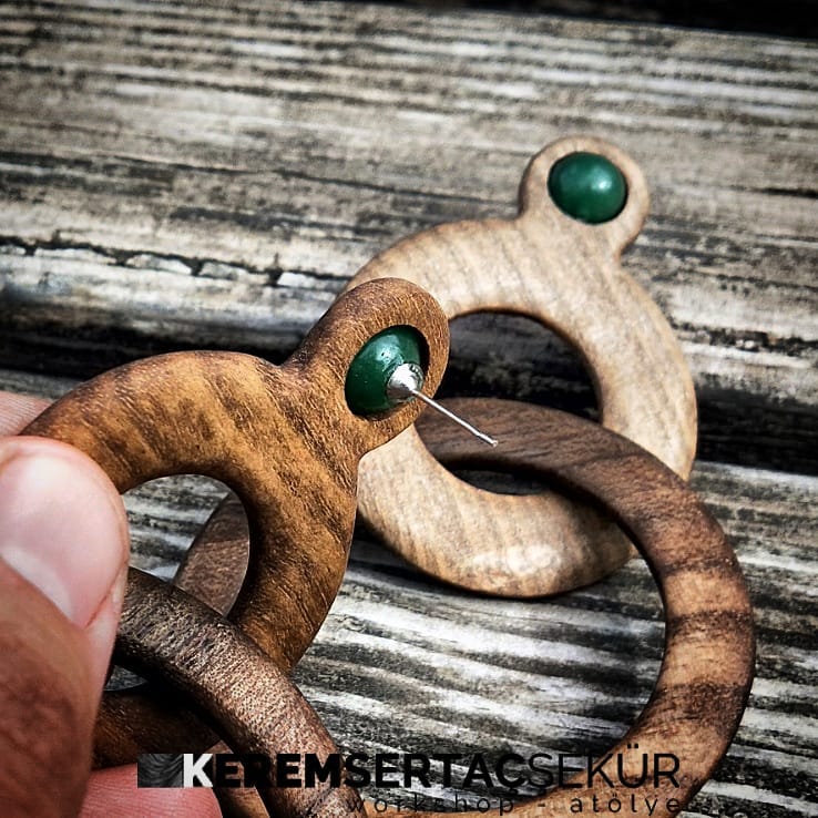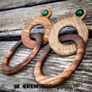Ceviz Ağacından Doğal Taşlı Ahşap Küpe