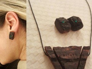 Meşe Ağacı Pelitinden Doğal Taşla Birleştirilmiş Küpe Ve Kolye Set (Pelit)