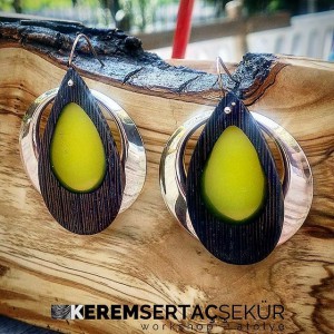 Venge Ağacından Epoksi Birleşimi Ahşap Küpe (Alá)